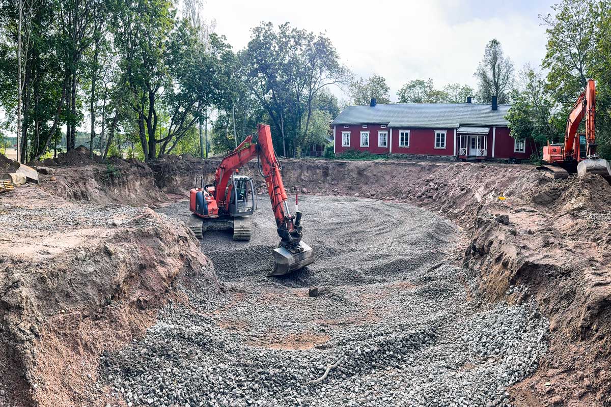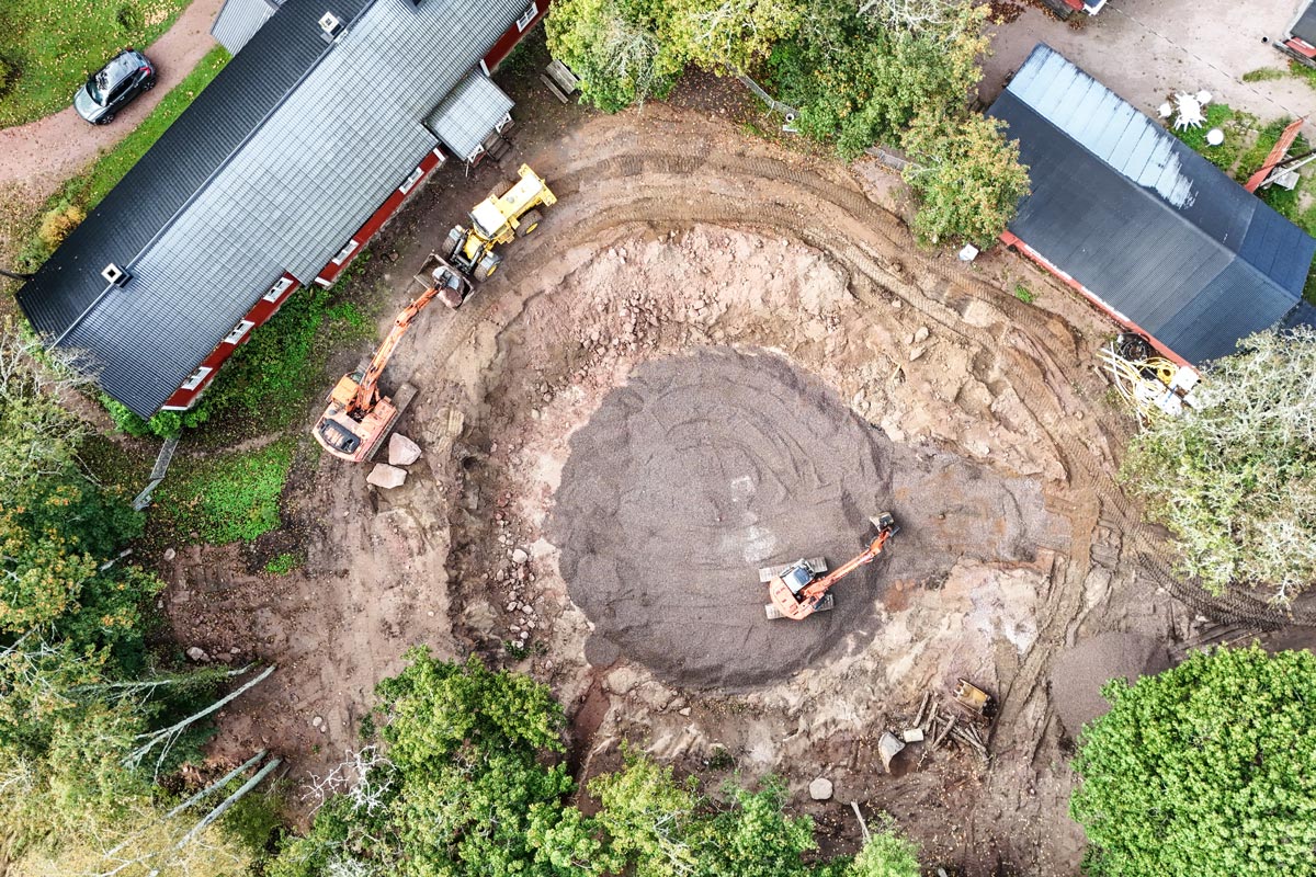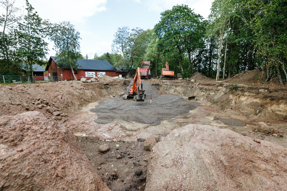 För tillfället görs markarbeten på Lurens inför gjutningen av grunden i oktober.